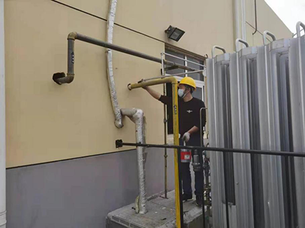 液化天然氣主要用于燃燒鍋爐后向醫(yī)療廢物滅菌器提供高溫蒸氣進行滅菌消毒,是京環(huán)公司重要的生產(chǎn)資料之一。 檢查人員仔細檢查了天然氣管道和設(shè)備,對部分老化的管道進行了除銹處理,并加裝了天然氣泄漏報警器和緊急切斷閥。