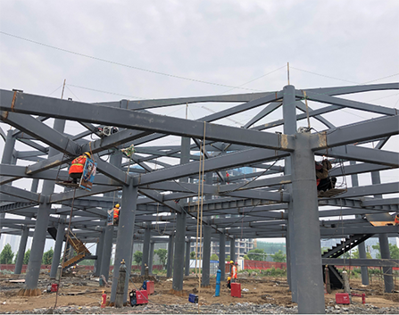 站在園區(qū)制高點(diǎn),整個(gè)園區(qū)盡收眼底――近處的園博花街造型獨(dú)特,其建筑骨架全部為鋼結(jié)構(gòu),整體造型像一個(gè)不規(guī)則形狀的蜂巢,目前B棟鋼結(jié)構(gòu)吊裝完成100%,A棟鋼結(jié)構(gòu)吊裝完成70%、C棟鋼結(jié)構(gòu)吊裝完成90%;礦井體驗(yàn)廳和荊山驛依山而建,正進(jìn)行一層主體結(jié)構(gòu)施工,兩座建筑風(fēng)格統(tǒng)一,功能上彼此獨(dú)立;遠(yuǎn)處的西大門花海階梯雛形已現(xiàn),過(guò)街天橋橋墩樁基工程完成100%,橋梁下部結(jié)構(gòu)完成60%;臨近的自然博物館坐落在水庫(kù)旁,整棟建筑被綠色網(wǎng)布包裹,目前正進(jìn)行第四層主體結(jié)構(gòu)施工;楚望樓樁基已下,正在進(jìn)行樁基壓力檢測(cè);東入口的園藝中心A區(qū)、D區(qū)主體結(jié)構(gòu)已封頂,B、C、E區(qū)正在進(jìn)行二層主體結(jié)構(gòu)及屋面結(jié)構(gòu)工程施工,總體完成70%,園藝中心配套服務(wù)區(qū)主體工程也已完成45%。
