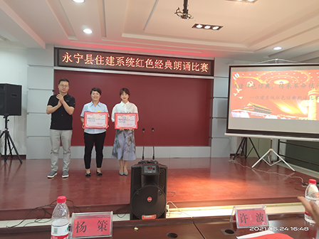 為慶祝建黨百年輝煌路,啟航時(shí)代新征程,近日,寧夏永寧縣住建系統(tǒng)組織舉行“誦讀紅色經(jīng)典,傳承革命精神”紅色經(jīng)典朗讀比賽活動。經(jīng)過層層角逐,市城控集團(tuán)所屬子公司寧夏勇冠房地產(chǎn)開發(fā)有限公司參賽選手康亞茹、孫茹以優(yōu)異成績分別榮獲本次活動的二等獎、三等獎。