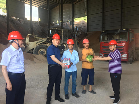 會前,礦業(yè)公司主要負(fù)責(zé)人一行先來到料場、磅房等生產(chǎn)一線,向高溫天氣堅守在崗位的員工送去了防暑降溫慰問品,并對生產(chǎn)、銷售情況進行了現(xiàn)場調(diào)研。