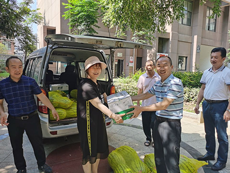 7月26日下午,市城控物業(yè)公司相關(guān)負(fù)責(zé)人帶領(lǐng)公司各個職能部門人員來到長坂坡公租房、大漢龍城、雙喜大廈、市民中心、長寧太和項目服務(wù)中心為一線員工發(fā)放西瓜、礦泉水等防暑降溫物資。大家你抬我扛,你接我送,把一份份清涼送到每個員工的手上,給辛勤工作的員工們送去了炎炎夏日的清涼關(guān)懷。