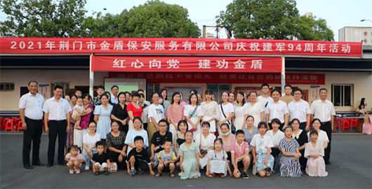 為慶祝中國(guó)人民解放軍建軍94周年,發(fā)揚(yáng)擁軍優(yōu)屬的光榮傳統(tǒng),激發(fā)員工的民族精神和愛(ài)國(guó)意識(shí),7月28日,市城控集團(tuán)所屬子公司市金盾保安公司開(kāi)展了以“紅心向黨,建功金盾”為主題的建軍94周年活動(dòng)。金盾公司班子成員、全體復(fù)轉(zhuǎn)軍人和家屬共計(jì)130余人歡聚一堂,共慶建軍佳節(jié)。