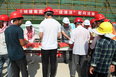 此次活動(dòng)中,城建集團(tuán)慰問(wèn)小組準(zhǔn)備了西瓜、風(fēng)油精、礦泉水、藿香正氣口服液、毛巾等防暑降溫慰問(wèn)品,一一分發(fā)到施工人員的手中。每到一處,慰問(wèn)組都向一線施工人員表示親切的問(wèn)候與關(guān)心,叮囑大家要做好高溫期間的勞動(dòng)保護(hù)和防暑降溫工作,要合理安排工作時(shí)間,勞逸結(jié)合,一定要把安全和健康放在第一位。