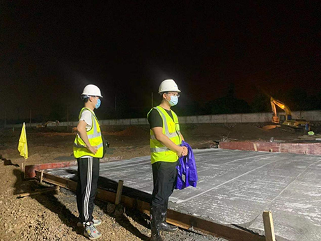 荊門建筑院人勇敢逆行,與時(shí)間賽跑,與疫魔斗爭(zhēng);現(xiàn)場(chǎng)監(jiān)理人員及時(shí)收集現(xiàn)場(chǎng)施工實(shí)際狀況照片,對(duì)接建設(shè)單位及施工單位,進(jìn)行回填碎石現(xiàn)場(chǎng)計(jì)量簽單、見(jiàn)證鋼筋送檢、對(duì)需要拆遷工程量進(jìn)行核實(shí)等工作,旁站組裝板房和混凝澆筑,現(xiàn)場(chǎng)督促施工單位注意高壓電線和安全作業(yè),要求他們做混凝土試塊并按圖施工,檢查施工單位進(jìn)度完成情況。每天晚上,公司主要負(fù)責(zé)人和監(jiān)理部?jī)擅偙O(jiān)都要參加項(xiàng)目工作會(huì)議,總結(jié)當(dāng)天項(xiàng)目進(jìn)展情況,安排部署第二天的工作,力保項(xiàng)目如期推進(jìn)。