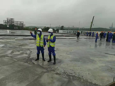 公司突擊隊(duì)員分駐在項(xiàng)目北區(qū)和南區(qū),每天分兩班,交接班時(shí)間為早上8時(shí)和晚上8時(shí),他們兢兢業(yè)業(yè),任勞任怨?,F(xiàn)場監(jiān)理人員要對板房組裝、材料進(jìn)場及時(shí)進(jìn)行檢查驗(yàn)收,并對材料數(shù)量進(jìn)行確認(rèn)簽證;旁站混凝土澆筑,確保項(xiàng)目質(zhì)量;與建設(shè)單位和施工單位交接土方施工事宜;同建設(shè)單位協(xié)調(diào)施工現(xiàn)場交通,測量碎石墊層范圍,確定墊層厚度;督促施工單位按計(jì)劃完成工程量,要求他們編制橫道圖進(jìn)度計(jì)劃表,及時(shí)增加人員和設(shè)備,保證按期完成。