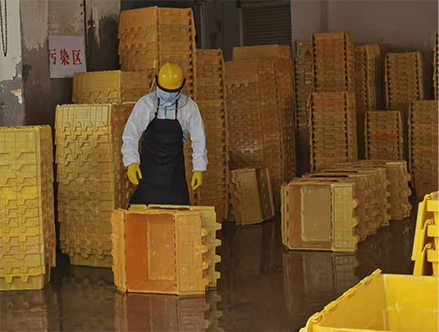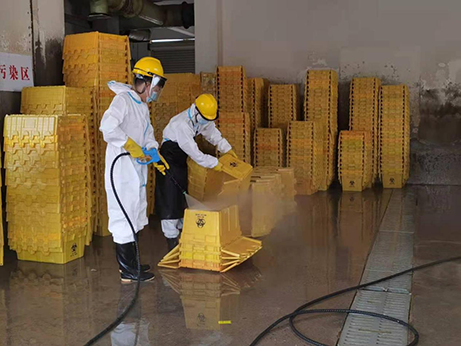 自2021年8月荊門發(fā)生疫情以來,醫(yī)療廢物產(chǎn)生量明顯增加,京環(huán)公司人員設(shè)備均處于超負荷運轉(zhuǎn)狀態(tài),醫(yī)療廢物處置能力受到嚴峻考驗。8月9日,城控集團向公司征集一名志愿者支援京環(huán)公司?!拔胰?,我有經(jīng)驗”,王家林再次主動請戰(zhàn)。經(jīng)過公司綜合評估后,確定了由王家林再次支援京環(huán)公司。8月10日,王家林收拾好換洗衣物,與家人簡單告別后,踏上了開往京環(huán)公司的車。到達京環(huán)公司后,經(jīng)過一線崗位操作流程和必備疫情防護技能培訓(xùn),根據(jù)京環(huán)公司統(tǒng)一調(diào)度安排,王家林迅速投入到了醫(yī)療廢棄物收集箱清洗的工作中。