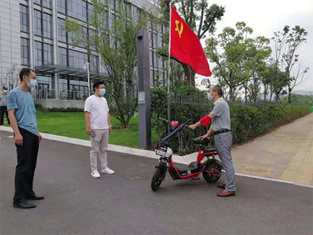田紅兵家在東寶區(qū),東寶區(qū)和漳河新區(qū)的兩個(gè)項(xiàng)目的日常巡查他毫不猶豫地承擔(dān)下來(lái)。從公司到長(zhǎng)寧太和項(xiàng)目往返20多公里,到雙喜大廈項(xiàng)目往返10多公里,一天下來(lái)騎著電動(dòng)車(chē)要跑近40公里的路程,每天如此。8月正值盛夏時(shí)節(jié),天氣炎熱,每跑一個(gè)地方就會(huì)大汗淋漓,一天下來(lái)衣服上都露出了鹽漬,有時(shí)候半路上遇到暴雨看不見(jiàn)騎行的道路,只好推著車(chē)找地方避雨。晚上回到家還要了解市區(qū)疫情防控最新政策,了解各個(gè)物業(yè)項(xiàng)目當(dāng)天的工作情況,安排部署明天的工作。有人勸他間隔巡查項(xiàng)目,不要這么辛苦,田紅兵卻說(shuō):“我是公司負(fù)責(zé)人,抗疫工作我應(yīng)該每天和員工們干在一起,共克時(shí)艱,堅(jiān)持到底,共同奪取抗擊疫情工作的最后勝利?!?nbsp;