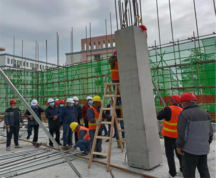 10月18日上午,伴隨著重型塔式起重機平穩(wěn)準(zhǔn)確地將項目第一根柱子吊裝入A區(qū)二層預(yù)留柱子鋼筋上,荊楚理工學(xué)院醫(yī)學(xué)教學(xué)實驗實訓(xùn)中心項目裝配式構(gòu)件吊裝施工正式啟動,標(biāo)志著項目施工進入新階段,距完成節(jié)點目標(biāo)又進一步。這既是市城控集團直屬子公司城建集團首個PC構(gòu)件裝配式建筑項目,也是荊門首個豎向構(gòu)件框架結(jié)構(gòu)裝配式建筑項目。