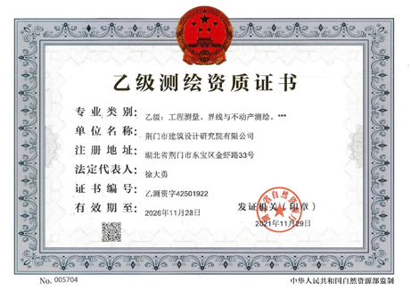 市建筑設(shè)計研究院取得的乙級測繪資質(zhì)證書,涵蓋工程測量、界線與不動產(chǎn)測繪等專業(yè),可以承接除國界線以外的界線測繪,單棟建筑面積10萬m2以下或單個合同標(biāo)的不超過建筑面積200萬m2的房地產(chǎn)測繪,進(jìn)一步擴(kuò)大了公司業(yè)務(wù)范圍,豐富了公司資質(zhì)體系,提升了市場競爭力,為公司實現(xiàn)高質(zhì)量發(fā)展提供了有力的技術(shù)保障,也將助力荊門測繪事業(yè)的發(fā)展。(文:金妮 圖:唐書翔 別聰毅)