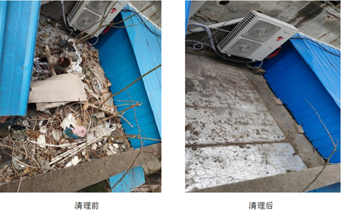 天城實(shí)業(yè)公司位于中天街71號(hào)門店的背街屋頂位置隱蔽、常年封閉,形成了大量的建筑及生活垃圾。公司主動(dòng)擔(dān)當(dāng)作為,迅速對(duì)垃圾進(jìn)行了集中清理、轉(zhuǎn)運(yùn),共清理建筑垃圾5車多。清理后,原本雜亂不堪的屋頂變得潔凈,得到了社區(qū)和居民的一致稱贊。(圖、文:韓國銳、周俊)