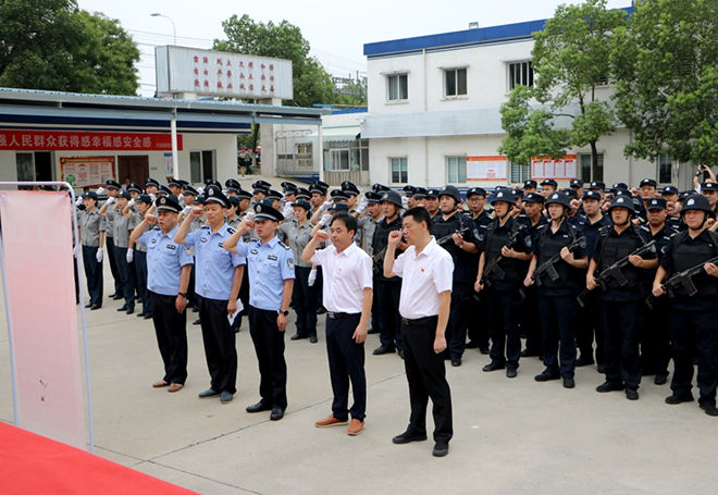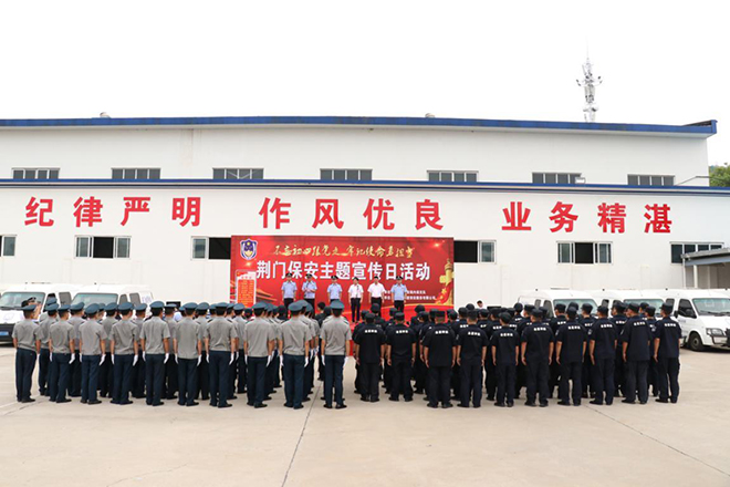 為充分展示公司良好的企業(yè)形象和保安押運(yùn)隊(duì)伍的專業(yè)素質(zhì),激發(fā)全體員工的工作熱情,動(dòng)員號(hào)召廣大保安企業(yè)和保安員積極投身服務(wù)新中國成立70周年大慶安保工作。8月7日上午,荊門保安主題宣傳日活動(dòng)在市金盾保安服務(wù)有限公司舉行。市公安局內(nèi)保支隊(duì)支隊(duì)長許永鴻、副支隊(duì)長許行松、高新?掇刀公安分局治安大隊(duì)大隊(duì)長張大斌、東寶公安分局治安管理中心社區(qū)警務(wù)大隊(duì)大隊(duì)長王永政,市金盾保安服務(wù)有限公司主要負(fù)責(zé)人全本峰、副總經(jīng)理蔣士龍出席活動(dòng),荊門區(qū)域內(nèi)15家保安企業(yè),市金盾公司所屬6家分公司和保安培訓(xùn)學(xué)校負(fù)責(zé)人及保安押運(yùn)員代表共計(jì)300余人參加此次活動(dòng)?;顒?dòng)由許行松主持,全本峰同志在活動(dòng)中致辭,張大斌同志領(lǐng)誓,許永鴻同志作總結(jié)指導(dǎo)講話。