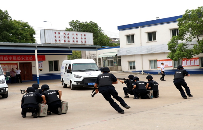此次活動(dòng)以“不忘初心跟黨走、牢記使命勇?lián)?dāng)”為主題,由荊門市公安局內(nèi)保支隊(duì)主辦,荊門市金盾保安服務(wù)有限公司承辦?;顒?dòng)現(xiàn)場,市金盾公司城區(qū)押運(yùn)分公司和安保守護(hù)分公司通過押運(yùn)應(yīng)用射擊、擒敵拳、隊(duì)列訓(xùn)練、靜態(tài)敬禮等科目的展示,充分展現(xiàn)了保安押運(yùn)隊(duì)伍飽滿的精神狀態(tài)和良好的技能風(fēng)采。全體參演隊(duì)員110余人進(jìn)行了集體宣誓,隊(duì)員們的威武雄壯的氣勢、整齊劃一的動(dòng)作、鏗鏘有力的呼號(hào)展示了大練兵的效果和全力做好國慶安保工作的必勝?zèng)Q心。