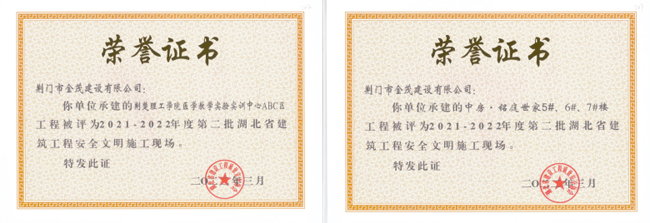 近日,省建設(shè)工程質(zhì)量安全協(xié)會(huì)公布“2021~2022年度第二批湖北省建筑工程安全文明施工現(xiàn)場(chǎng)”名單,市城控集團(tuán)所屬子公司金茂公司承建的中房?銘庭世家(5#、6#、7#樓)和荊楚理工學(xué)院醫(yī)學(xué)教學(xué)實(shí)驗(yàn)實(shí)訓(xùn)中心(ABC區(qū))榜上有名。