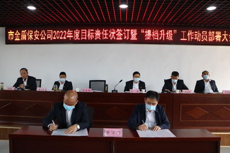 近日,市城控集團(tuán)所屬子公司市金盾保安公司在培訓(xùn)學(xué)校多功能會(huì)議室召開(kāi)公司2022年度目標(biāo)責(zé)任狀簽訂暨“提檔升級(jí)”工作動(dòng)員部署大會(huì)。金盾保安公司班子成員、各子(分)公司班子及綜合辦公室負(fù)責(zé)人、機(jī)關(guān)全體工作人員參加會(huì)議。
