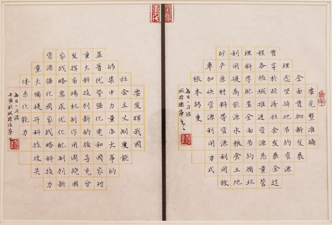 ――荊門城控集團(tuán)黨委委員、紀(jì)委書記、監(jiān)察專員鐘立峰為本次活動(dòng)書寫的書法作品“盛世中華”“恰同學(xué)少年”。