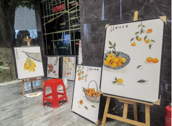 一邊是熱火朝天的書法區(qū),另一邊是暖意濃濃的油畫區(qū)。在油畫老師們妙手之下,一幅幅色彩豐富、節(jié)奏明快的“柿柿如意”“大橘大利”“蘋蘋安安”別具匠心、栩栩如生。愛好書法、繪畫的業(yè)主們也趁機(jī)討教經(jīng)驗(yàn)、切磋技藝,現(xiàn)場氣氛熱烈。
