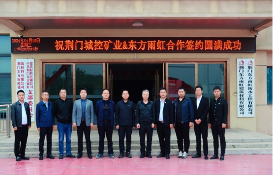 4月10日,武漢市東方雨虹經(jīng)虹科技工程有限公司(以下簡(jiǎn)稱(chēng)“東方雨虹公司”)與荊門(mén)城控礦業(yè)有限公司(以下簡(jiǎn)稱(chēng)“城控礦業(yè)”)在東方雨虹荊門(mén)公司舉行戰(zhàn)略合作框架協(xié)議簽約儀式。掇刀區(qū)人大常委會(huì)副主任李華平見(jiàn)證簽約并致辭。市城控集團(tuán)總經(jīng)理肖德金、東方雨虹工建集團(tuán)湖北公司總經(jīng)理杜永杰分別代表雙方簽署戰(zhàn)略合作協(xié)議。