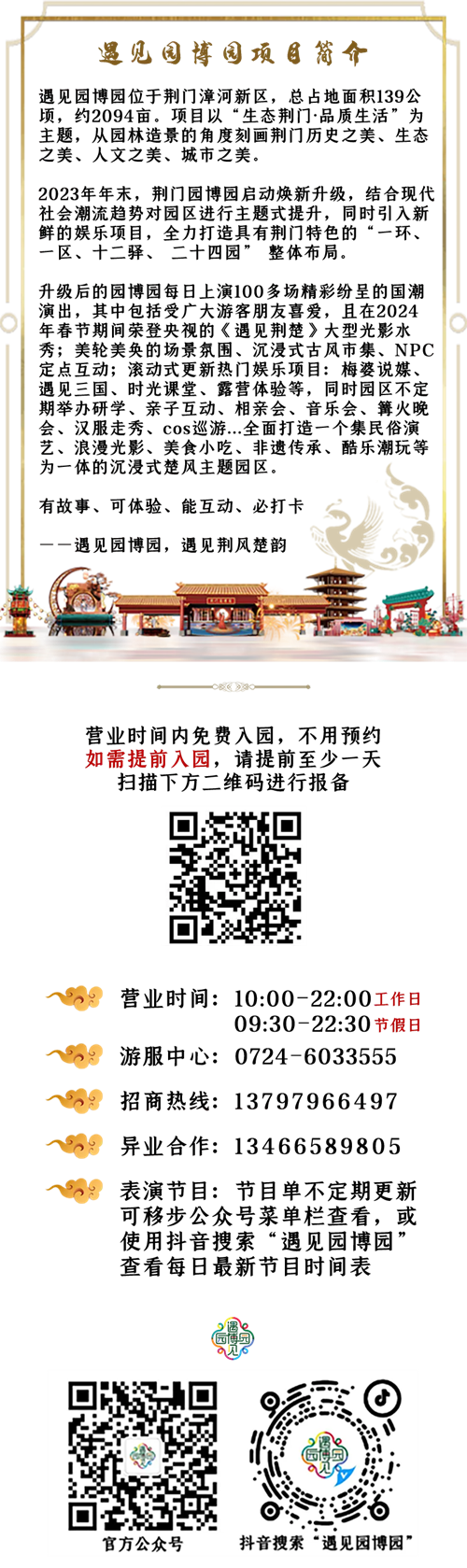 相信在未來(lái),遇見(jiàn)園博園將在五一期間繼續(xù)舉辦草坪音樂(lè)節(jié)、萌寵樂(lè)園、露營(yíng)帳篷以及獨(dú)具民族特色的非遺打鐵花、攔門(mén)酒、竹竿舞、國(guó)風(fēng)大典婚禮秀等特色活動(dòng),為廣大游客帶來(lái)更多驚喜與歡樂(lè),為傳承和弘揚(yáng)荊楚文化作出更大的貢獻(xiàn)。