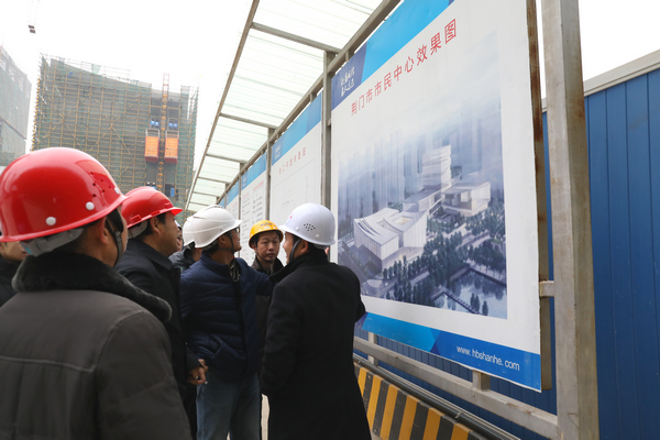 圖為集團(tuán)領(lǐng)導(dǎo)調(diào)研市民中心項(xiàng)目現(xiàn)場