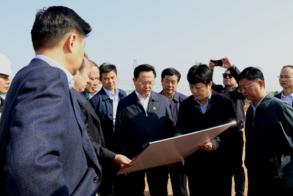圖為孫兵市長到荊門保稅物流中心(B型)項目現(xiàn)場進(jìn)行實地調(diào)研