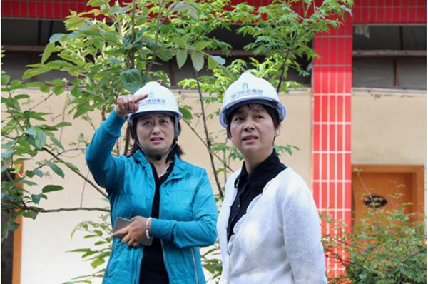 圖為集團黨委委員、副總經理魯愛群(右一)在現場查看施工情況