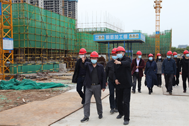 在項目現(xiàn)場,賀應(yīng)佳首先聽取了龍山中央商務(wù)區(qū)項目概況及施工進度匯報,詳細了解了項目防疫物資保障、工程疫情防控和復(fù)工復(fù)產(chǎn)工作情況,隨后查看了項目施工區(qū)域、辦公場所、生活區(qū)域封閉管理情況,對項目疫情防護、復(fù)工復(fù)產(chǎn)等工作表示肯定。