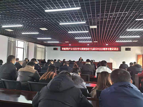 為全面深入學習領(lǐng)會黨的十九屆五中全會精神,引導廣大黨員干部群眾把思想和行動統(tǒng)一到全會精神上來,把智慧和力量凝聚到落實全會確定的各項目標任務(wù)上來,推動興起學習宣傳貫徹全會精神的熱潮,市城控集團所屬市城控資產(chǎn)公司于12月23日在市金盾保安培訓學校多功能電教室組織學習貫徹黨的十九屆五中全會精神專題宣講會。市城控資產(chǎn)公司及所屬企業(yè)中層及以上干部,公司機關(guān)工作人員等60余人參加。