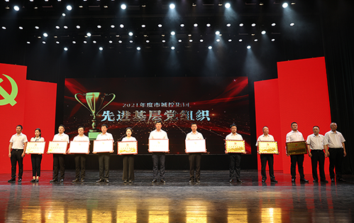 集團黨委副書記、副總經理張杰,集團黨委委員、紀委書記鐘立峰,集團黨委委員、副總經理江泉為“先進基層黨組織”獲獎代表頒獎。