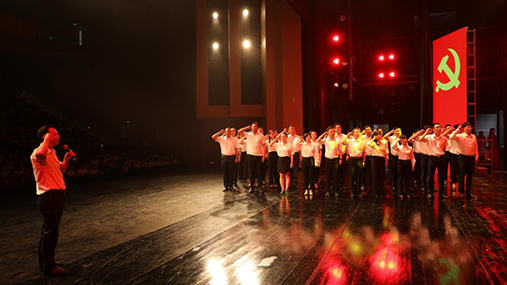 文藝匯演中,舉行了新黨員入黨宣誓儀式,在市城控集團黨委副書記張本華帶領下,新黨員上臺宣誓,面對鮮紅的黨旗莊嚴承諾,表達為共產主義事業(yè)奮斗終身的決心和信念。