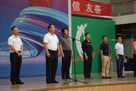 隨后,賽事現(xiàn)場(chǎng),裁判員、運(yùn)動(dòng)員代表分別上臺(tái)莊嚴(yán)宣誓。杜佐鵬宣布籃球賽開(kāi)幕,在熱烈的掌聲中比賽徐徐拉開(kāi)帷幕,程雄為職工籃球賽揭幕戰(zhàn)開(kāi)球。