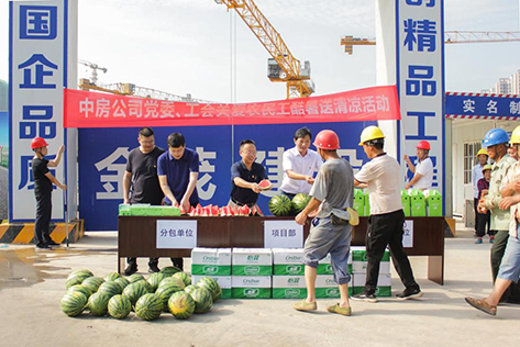 慰問小組先后來(lái)到中房?銘庭世家、中房?攬?jiān)滦浅?、荊楚理工學(xué)院學(xué)生公寓、民兵訓(xùn)練基地等項(xiàng)目部,為頂酷暑、戰(zhàn)高溫的一線人員送來(lái)礦泉水、西瓜、葡萄、藿香正氣液、仁丹等防暑降溫物資,讓大家感受到了夏日里的一抹清涼。 每到一處,慰問小組將關(guān)懷物資送到了一線人員手中,并對(duì)他們的艱辛付出表示誠(chéng)摯感謝,同時(shí)叮囑大家在緊張工作的同時(shí),要特別注意做好自身防暑降溫工作,保證安全、生產(chǎn)兩不誤。慰問小組還要求項(xiàng)目部要高度重視高溫季節(jié)安全生產(chǎn)和防暑作業(yè),根據(jù)夏季高溫時(shí)段,靈活安排現(xiàn)場(chǎng)作業(yè)時(shí)間,認(rèn)真落實(shí)各項(xiàng)防暑降溫措施,做好勞動(dòng)保護(hù)工作,盡可能避開高溫時(shí)段在烈日下和極度悶熱環(huán)境中從事強(qiáng)體力勞動(dòng)。