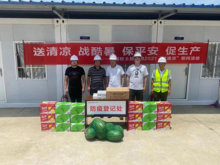 同日,市城控集團(tuán)直屬子公司市城控土投公司積極組織,精心籌備,及時(shí)開展了“送清涼、戰(zhàn)酷暑、保平安、促生產(chǎn)”慰問活動(dòng)。清涼降暑的飲料、西瓜和解暑藥品送到了一線施工人員的手中,表達(dá)了公司關(guān)心、體恤一線施工作業(yè)人員的濃濃情意,給炎炎夏日帶來(lái)了一絲愜意,一縷清涼。
