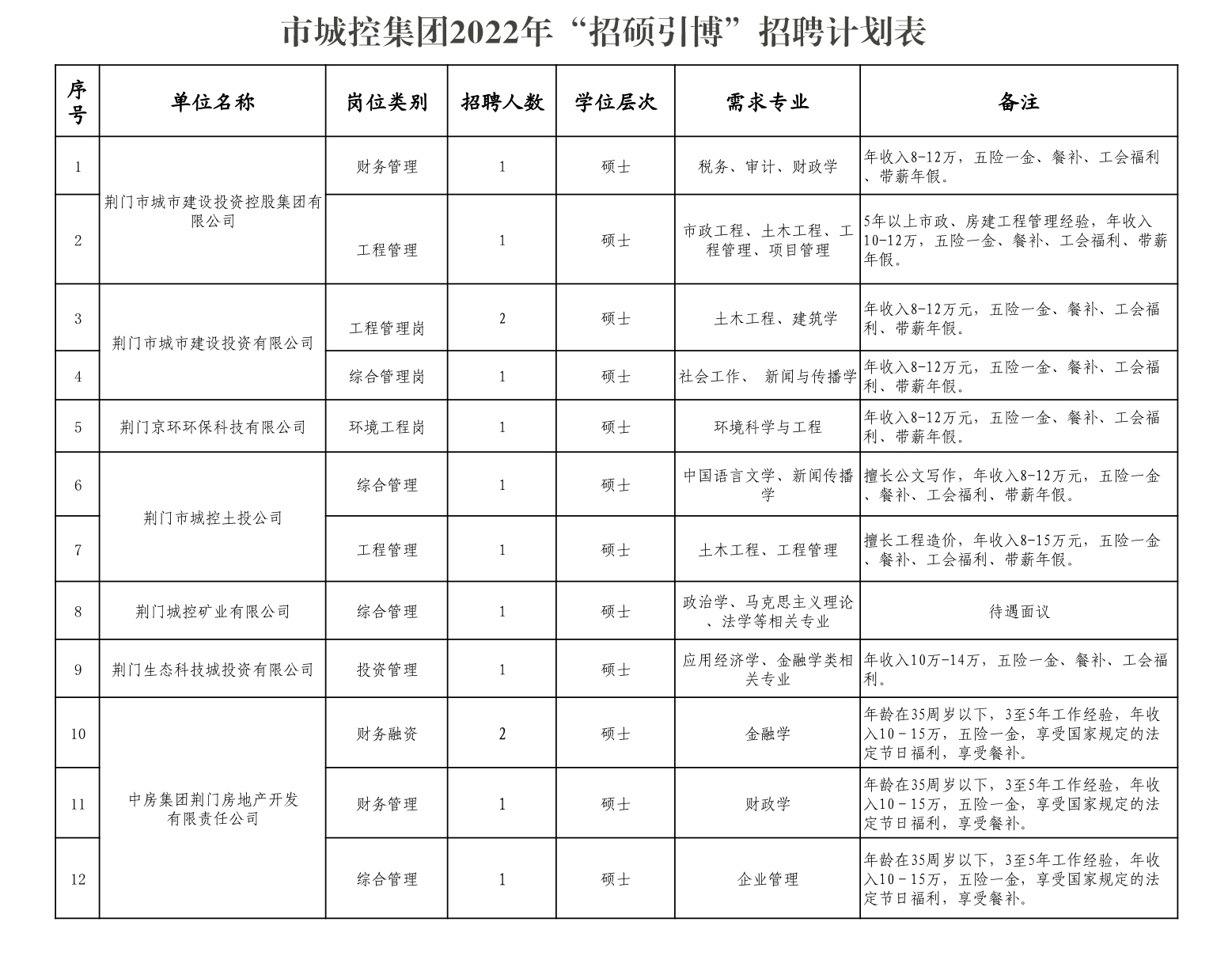 荊門市城市建設(shè)投資控股集團(tuán)有限公司2022年“招碩引博”補(bǔ)充公告