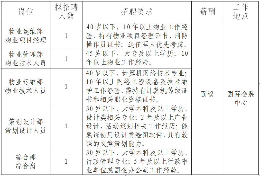 荊門玖伊園科技有限公司為荊門市城市建設(shè)投資控股集團有限公司(以下簡稱城控集團)所屬公司,成立于2017年5月,注冊資本金1000萬元,主營業(yè)務(wù)為場館管理、智慧運營、招商引資、活動策劃等?,F(xiàn)因工作需要,面向社會公開招聘5名工作人員。相關(guān)招聘工作公告如下: