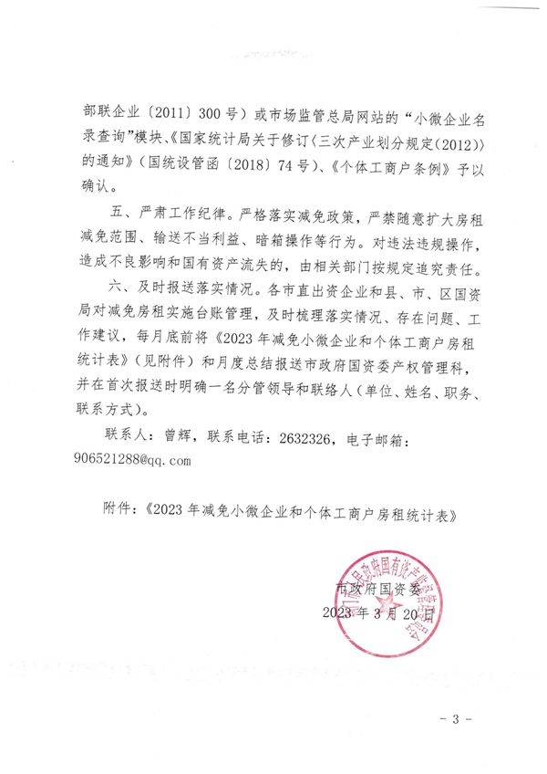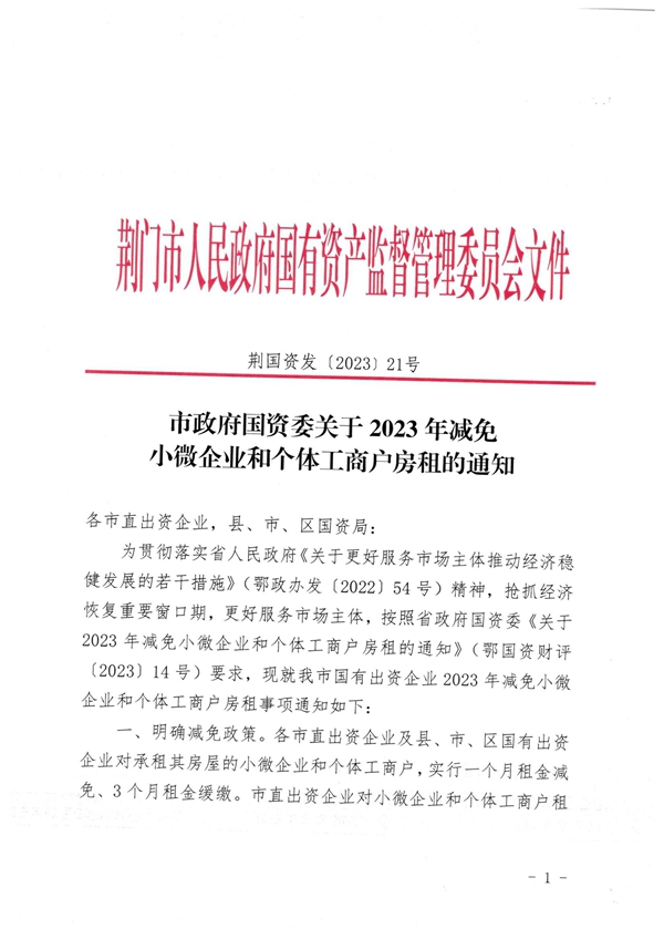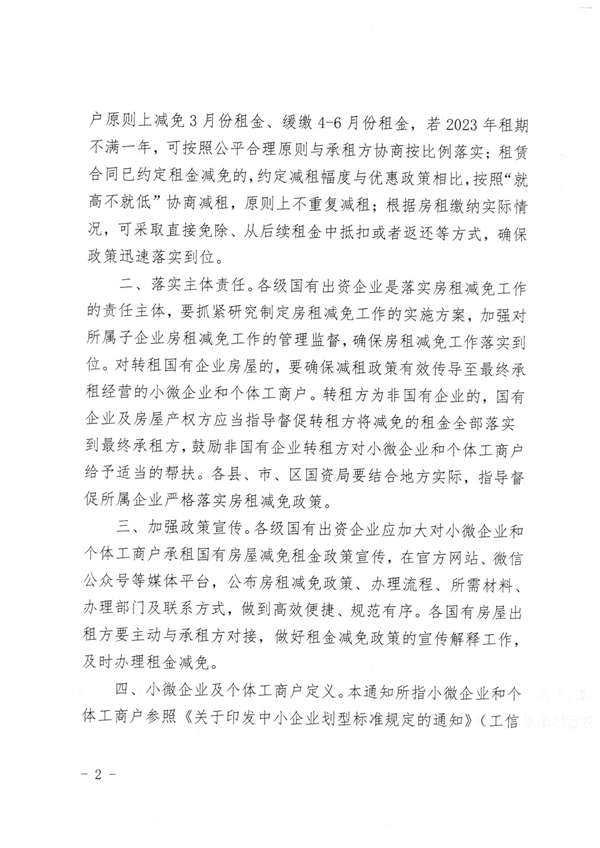 市政府國(guó)資委關(guān)于2023年減免小微企業(yè)和個(gè)體工商戶(hù)房租的通知