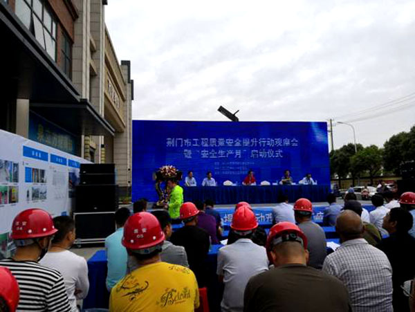 5月28日,市住建委在荊門萬(wàn)達(dá)廣場(chǎng)項(xiàng)目施工現(xiàn)場(chǎng)組織召開“荊門市工程質(zhì)量安全提升行動(dòng)觀摩會(huì)暨‘安全生產(chǎn)月’啟動(dòng)儀式”,各縣市區(qū)建設(shè)主管部門,全市各建設(shè)、施工、監(jiān)理企業(yè)負(fù)責(zé)人,以及城建集團(tuán)項(xiàng)目管理人員參加了觀摩學(xué)習(xí)。