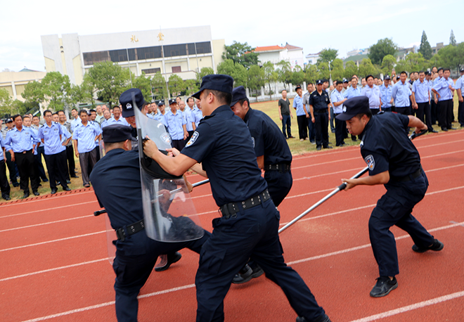 為了迎接2019年秋季開學,切實加強中小學、幼兒園校園安保工作,全面提高校園安保人員處置突發(fā)事件的能力,進一步提升校園安保人員的整體素質,筑起“平安校園”的銅墻鐵壁。8月26日-8月29日,市金盾保安培訓公司對鐘祥市中小學及幼兒園共計459名校園安保人員開展了為期四天的專業(yè)培訓。培訓的內容主要為:保安員基礎知識、校園突發(fā)事件應急處置、保安防護裝備器材的使用、消防技能及軍事訓練。