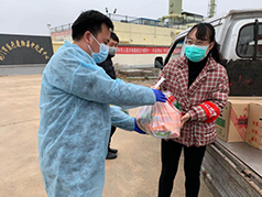 實業(yè)投資公司辦公室副主任舒鳳華為京環(huán)公司董事長徐勇遞上物資