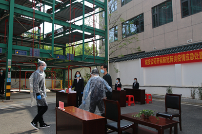 演練中,工作人員現(xiàn)場(chǎng)演示了辦公場(chǎng)所消毒通風(fēng)、上下班體溫監(jiān)測(cè)、來(lái)訪人員體溫檢測(cè)、登記等日常辦公流程。模擬了員工在上班途中身體不適,工作人員再對(duì)其進(jìn)行體溫檢測(cè)發(fā)現(xiàn)異常后,隨即啟動(dòng)疫情應(yīng)急處置預(yù)案,將其安排至隔離室再次使用水銀體溫計(jì)腋下測(cè)試,確認(rèn)體溫異常后聯(lián)系120急救人員送發(fā)熱門診就醫(yī),同時(shí)對(duì)密切接觸人員逐一排查,對(duì)辦公場(chǎng)所進(jìn)行消毒殺菌,并將有關(guān)情況報(bào)上級(jí)部門。
