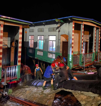 暴風(fēng)雨中往上調(diào)整取水臺(tái)車